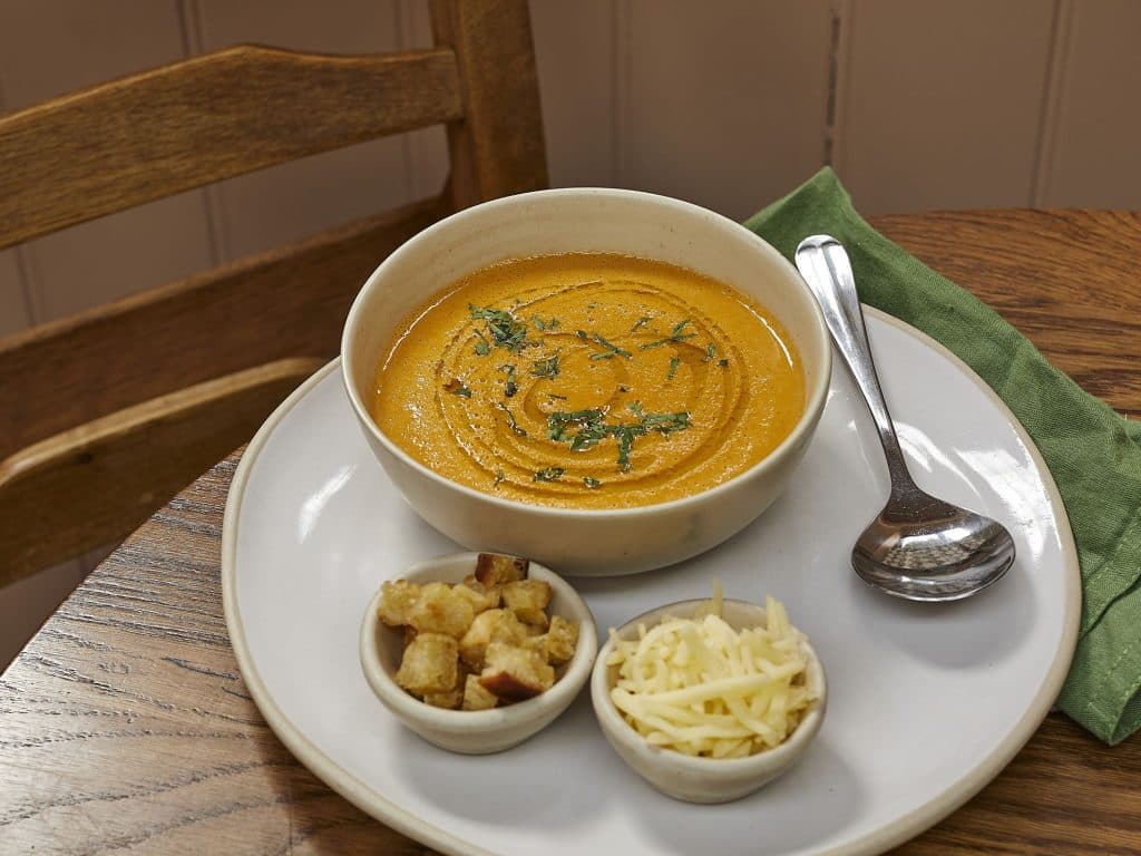 Warming, rich and deeply satisfying, our Fish Soup arrives with rouille, Gruyère and garlic croutons. The sort of bowl that makes you slow down and savour every spoonful.