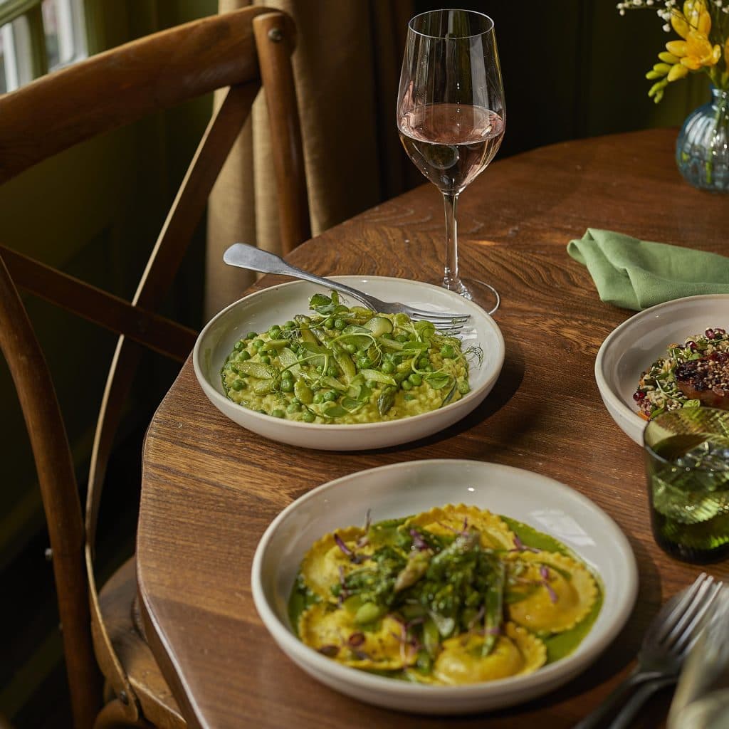 Indulge in our mouthwatering starters and mains, including our crowd-pleasing Harissa-glazed sweet potato, our rich spring vegetable risotto and our zesty pine nut & lemon ricotta ravioli.